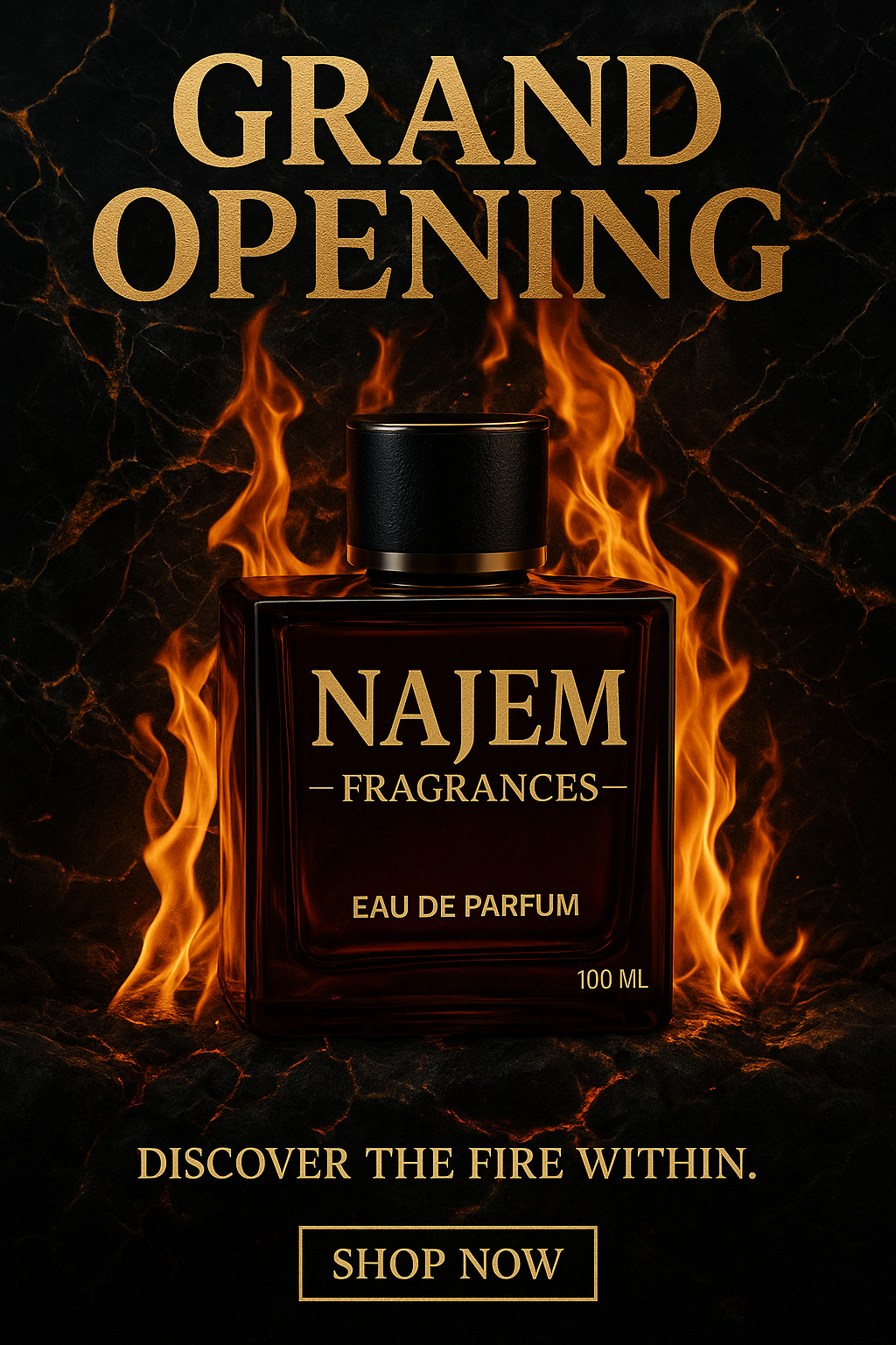 Step into a world where fire, passion, and luxury collide. Najem Fragrances - Discover your essence today.